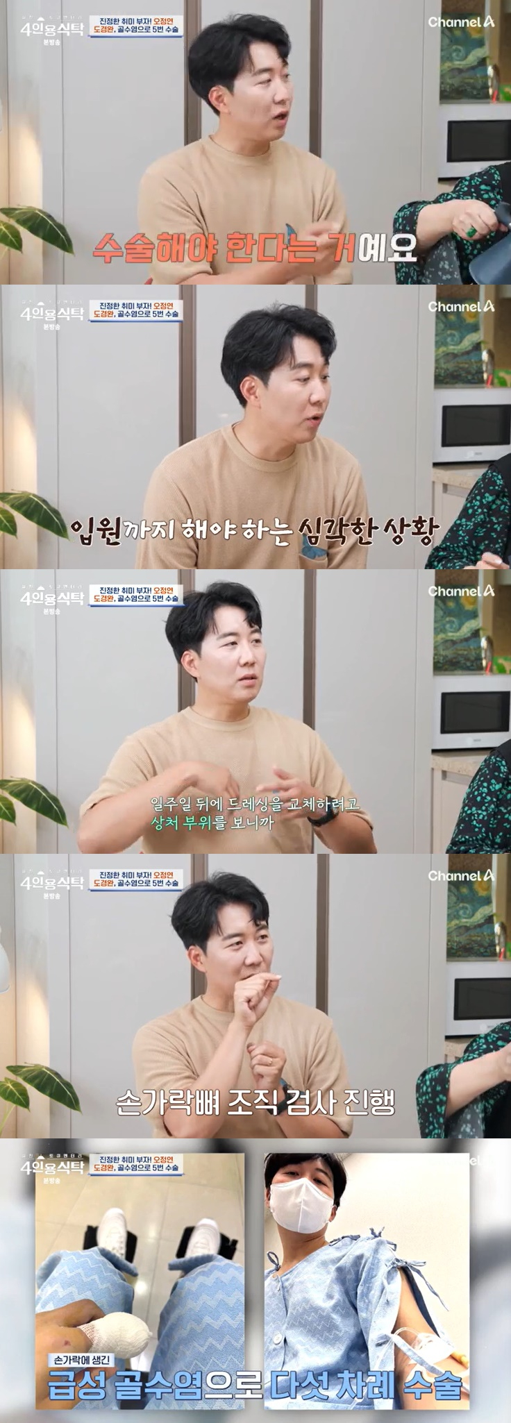 아나운서 출신 방송인 도경완이 급성 골수염으로 5번 수술 받은 사연을 밝혔다.