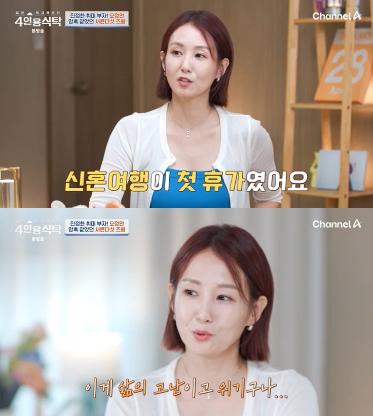 12일 방송된 채널A '절친 토큐멘터리 4인용식탁'(이하 '4인용식탁')에서는 오정연이 도경완, 윤희정, 이지애를 초대했다.