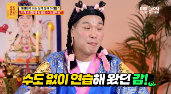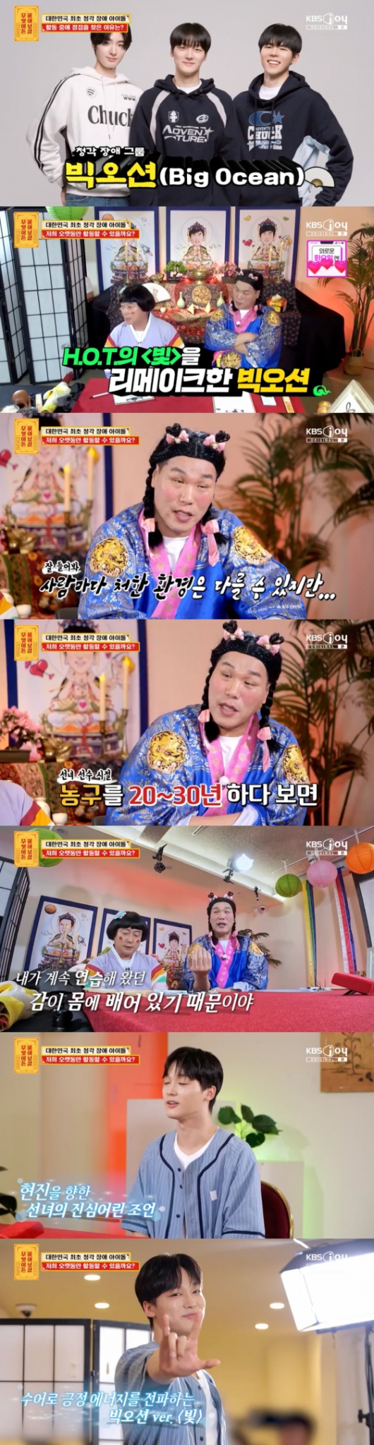 12일 방송된 KBS Joy 예능 프로그램 '무엇이든 물어보살'에는 국내 최초 청각 장애 그룹 빅오션 멤버 현진이 출연했다.
