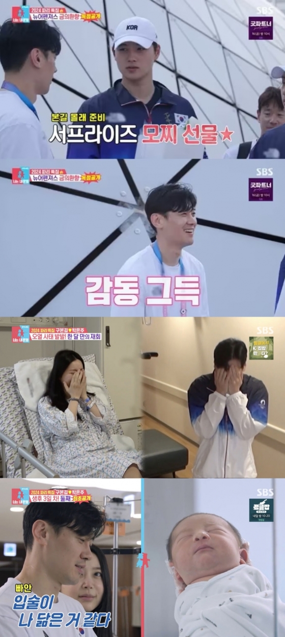 이날 두 사람은 처음으로 함께 둘째 아들 모찌를 만났다. 두 사람의 입가에는 계속 미소가 번졌고 서로 자기를 닮았다고 티격태격해 웃음을 자아냈다. 한편 구본길은 올림픽에서의 불안감을 고백하면서 "아내가 '5점은 최강이다'라고 응원해 줬는데 그 말 덕분에 힘낼 수 있다. 내 멘탈 관리자다"고 감사의 마음을 표현했다.