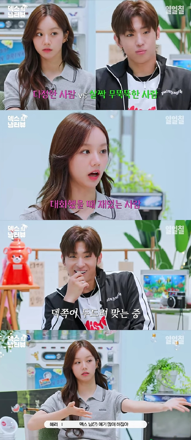 이날 덱스는 혜리의 첫인상에 대해 "실물이 100배 나은 것 같다. 성숙한 어른 같이 느껴졌는데 눈앞에 있으니까 아기 같다는 느낌이 든다. 여동생 같은 느낌"이라며 "찾아보니까 생일도 똑같더라. 살면서 나랑 생일 똑같은 사람 처음 본다"고 말했다.