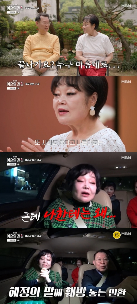 18일 방송된 MBN '한 번쯤 이혼할 결심'에 이혜정, 고민환 부부의 가상 이혼 이후 일상을 밝혔다.