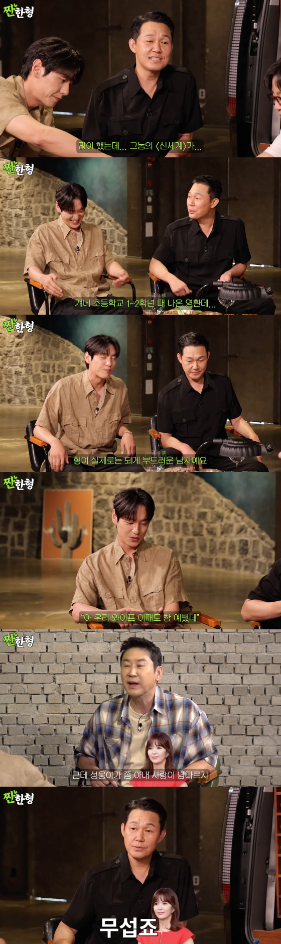 이에 박성웅은 "착한 역할도 많이 했는데 그놈의 '신세계' 때문에 고등학생들도 나를 '중구 형님'이라고 부른다. 그 영화가 나왔을 때는 그 아이들이 초등학생이었을 것"이라고 토로해 웃음을 자아냈다.