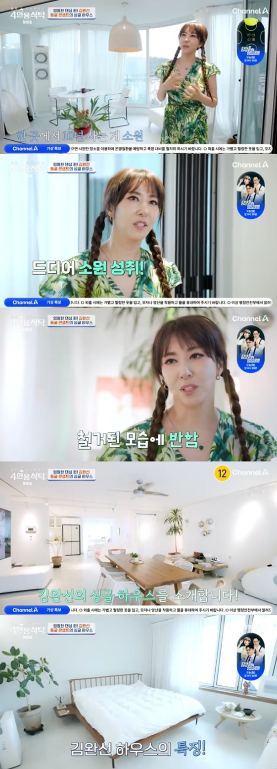 채널A 시사교양 프로그램 '절친 토큐멘터리 4인용식탁'(이하 '4인용 식탁')에서 김완선이 싱글 하우스를 공개했다.