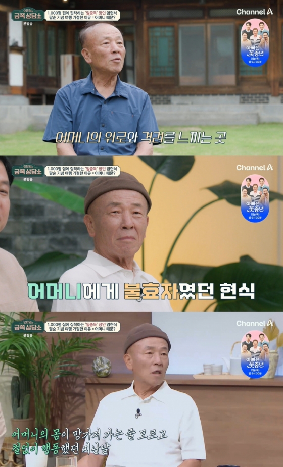 임현식이 여행을 떠날 수 없는 가장 큰 이유는 1000평 주택 때문이었다. 그는 "(여행 갈) 마음이 내키지 않았다. 가고 싶어도 갈 수가 없었다"라며 "난 이 집이 좋다. 고생스럽긴 해도. 곳곳에 어머니가 보인다. 어머니가 날 언제나 격려하고 있고 그런 힘을 느낀다"라고 말했다.
