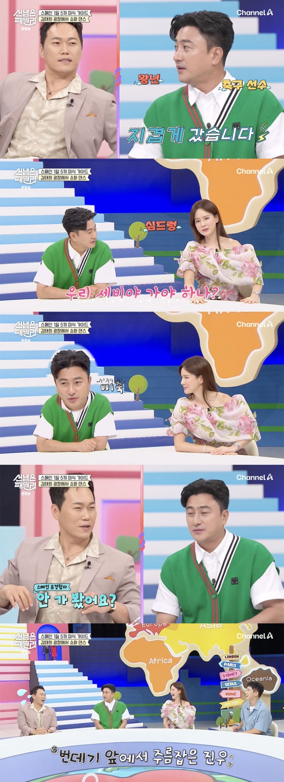 이를 가만히 지켜보던 MC 송진우는 스페인 유경험자임을 뽐내며 안정환에게 "안 가봤어요?"라고 으스댔다.