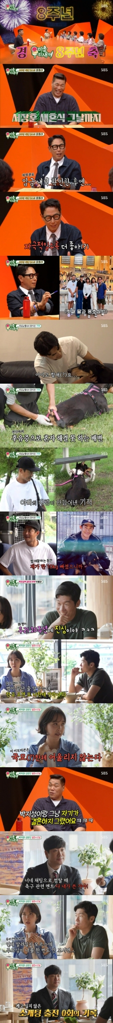 이날 SBS '미운 우리 새끼'는 방송 8주년 기념 특집으로 펼쳐졌다. MC 신동엽은 "미우새 아들들이 결혼해서 딸 아들 낳고 행복하게 사는 그날까지 최선을 다하겠다. 우리 장훈이가 새혼 하는 날까지 하겠습니다"라고 8주년 기념 소감을 전했다.