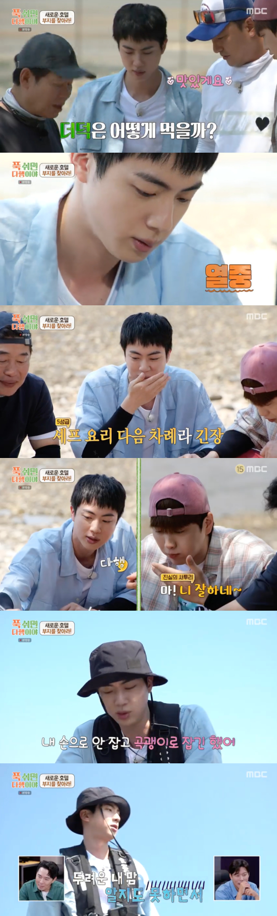26일 방송된 MBC 예능 프로그램 '푹 쉬면 다행이야'에서는 직접 찾은 소라, 해삼, 더덕을 사용해 요리를 만드는 진의 모습이 그려졌다.