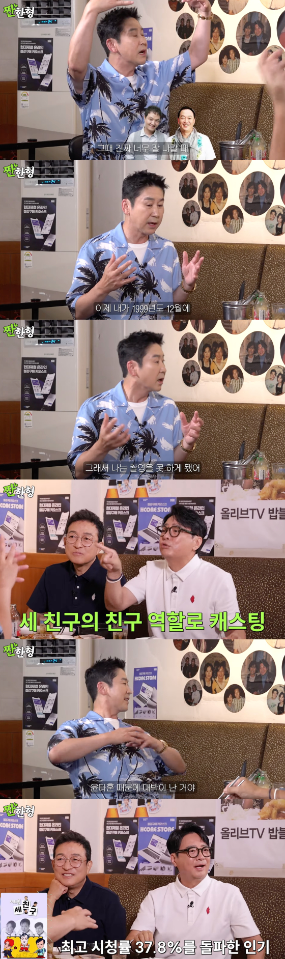 신동엽은 "내가 평생 (윤)다훈 형에게 고마운 게 있다. 2000년에 방영됐던 '세 친구'라는 드라마가 있는데 그걸 내가 기획하고 아이디어를 냈었다"고 운을 뗐다.