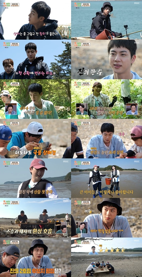 섬에 도착하자마자 식재료 수급 여부를 테스트하기 위해 해루질에 나선 안정환과 일꾼들. 이때 진은 혼자 낚싯대를 만들며 "참치를 잡겠다"고 자신만만하게 이야기했다. 안정환은 실제로 바다에서 참치를 잡은 적이 있다는 진의 말을 믿지 않았지만, 진의 낚싯대를 직접 손 봐주며 그를 챙겼다.