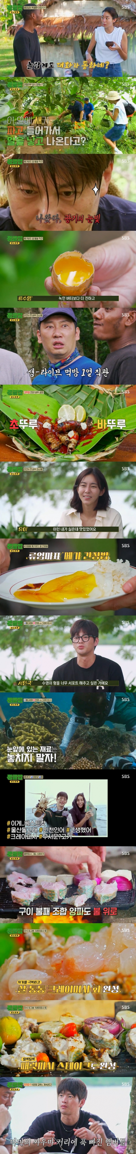이어 멤버들은 바누아투의 식재료를 찾아 나서며 '식재료 연구 DAY'를 시작했다. 땅속에 알을 낳는 새, 메가포드의 알을 찾기 위해 땅을 파헤치던 서인국의 손끝에 걸린 알이 깨져버리는 해프닝이 발생하기도 했다. 노른자를 맛본 류수영은 "왜 게 맛이 나지? 녹인 버터보다 더 진하다. 내가 먹은 알 중 가장 진한 노른자였다"라며 충격에 눈을 동그랗게 떴다.