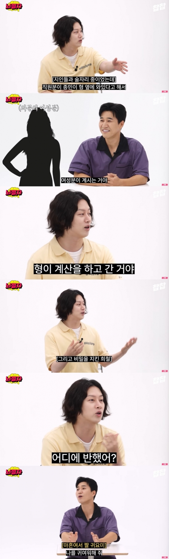 김희철은 김종민의 여자친구를 보게 된 계기로 "선술집에서 술을 먹고 있는데 직원분이 종민이 형 옆에 와있다고 해서 형 보러 인사하러 갔다. 여자친구가 계셔서 인사하고 (내가) '얘기 안 할 거니까 걱정 말라'고 하고 술을 먹었는데 형이 계산을 하고 간 거다. 그리고 나는 그 어떤 말도 안 했다"라고 밝혔다.