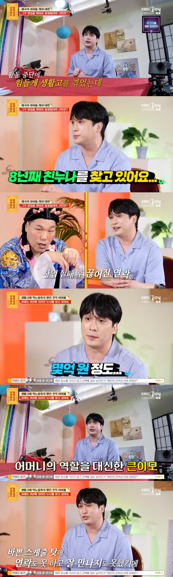 그는 "현재 가장 큰 고민은 8년째 친누나를 찾고 있다는 거다. 누나가 큰 이모와 함께 사업 준비를 하다가 잘 안 됐는데 그 후로 연락이 끊겼다"고 털어놨다.