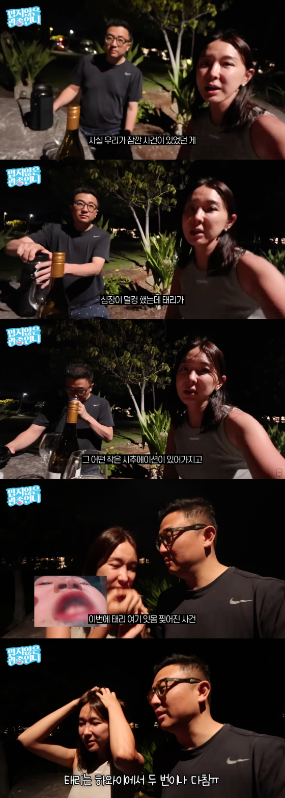 이어 "태리가 좀 다쳤다. 지금은 울다가 잠들어서 우리끼리 조촐하게 바비큐를 해 먹고 들어가겠다. 태리가 실종된 게 아니라서 다행이다"고 털어놨다.