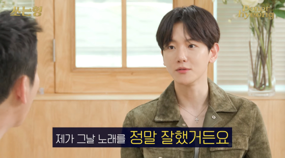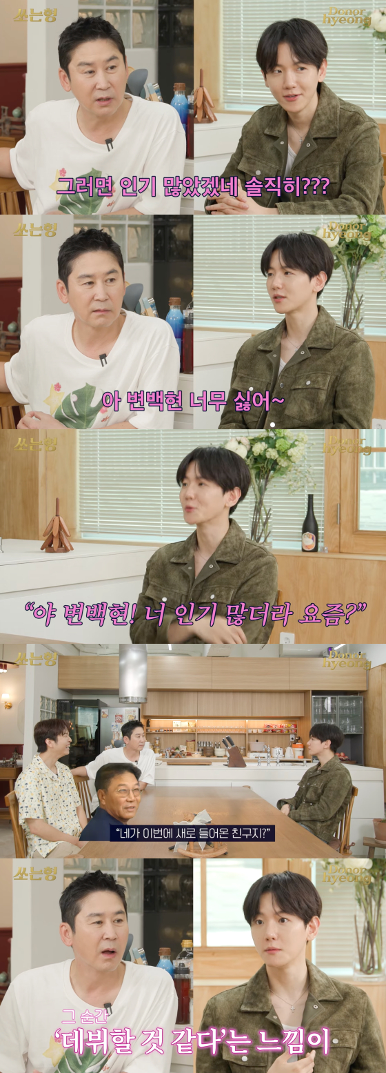 신동엽은 또 "연습생 생활도 오래하지 않았는데 메인 보컬이 되지 않았냐"고 물었고, 백현은 "운이 좋았다. 기회는 불쑥 찾아온다는 말이 맞는 것 같다"고 말했다.