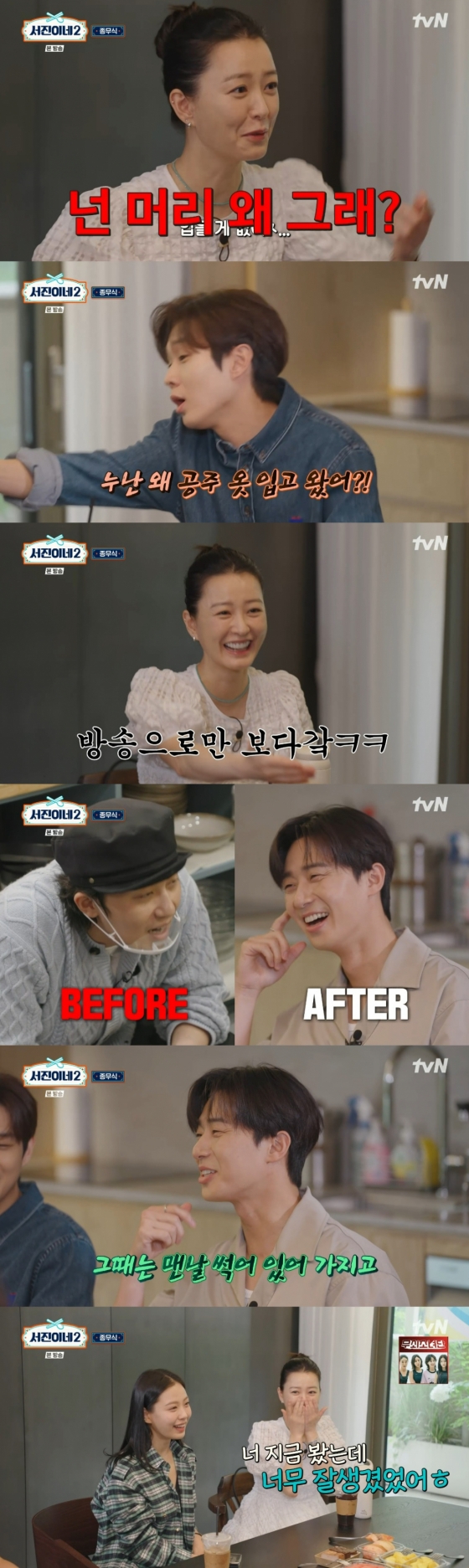 그러면서도 정유미는 최우식을 향해 "넌 머리 왜 그래?"라며 저격해 웃음을 자아냈다. 결국 최우식은 "누난 머리 왜 그래? 누난 왜 공주 옷 입고 왔어?"라며 맞받아쳤고, 정유미는 "여름엔 이런 옷 밖에 없다. 블랙보다는 화이트가 나을 것 같아서 입고 왔다"라고 해명했다.