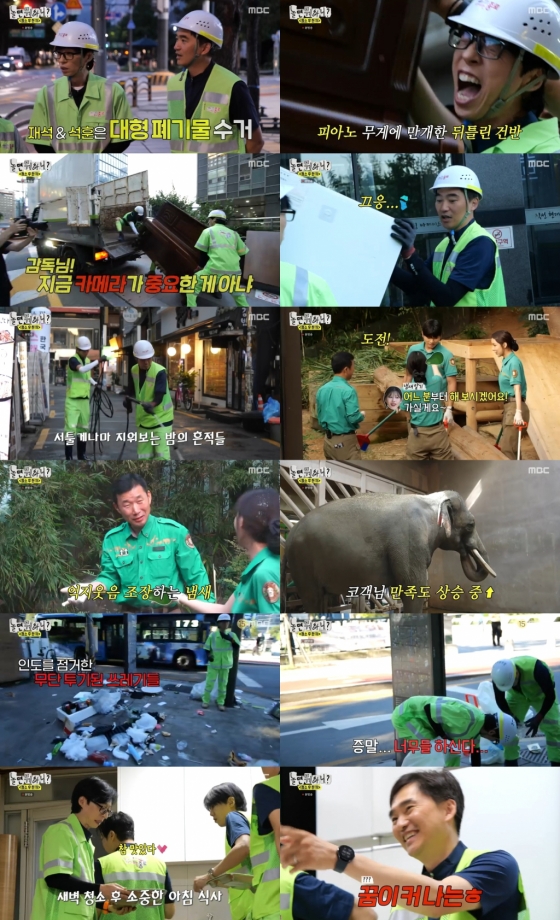 지난 7일 방송된 MBC '놀면 뭐하니?'는 '쓰레기 아저씨' 김석훈과 함께한 '청소 후 한끼' 편으로 꾸며졌다. 친구 김석훈을 따라 '쓰저씨'가 되어 환경공무관 체험에 나선 유재석은 담배꽁초 지옥, 무단 투기 쓰레기로 가득한 거리에 분노를 드러냈다. 멤버들이 구슬땀을 흘리며 만든 재미는 물론, 우리가 알지 못한 사이 이뤄진 환경공무관들의 숨은 노력과 고생에 다시 한번 감사함을 느끼게 하는 시간을 선사했다.