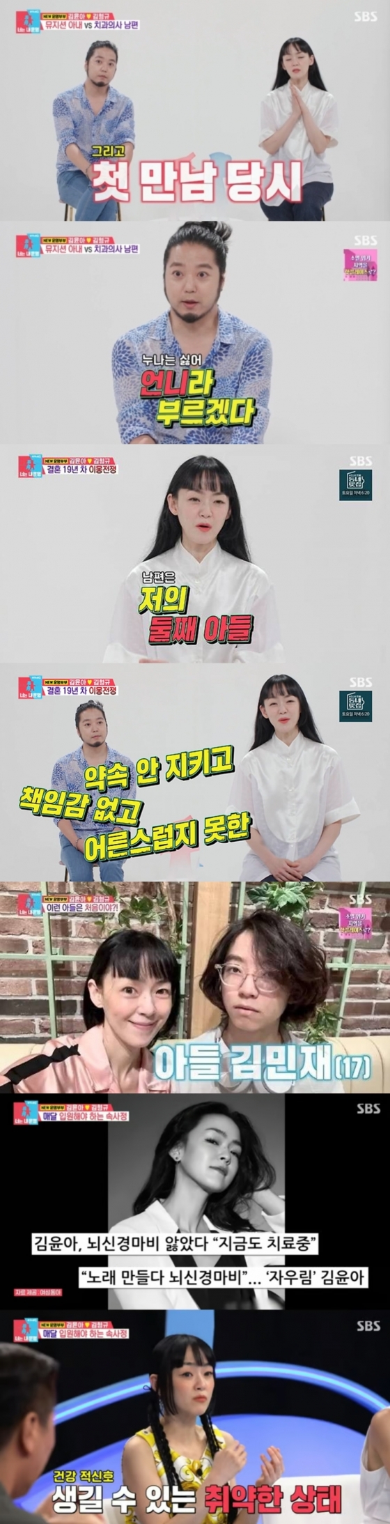 반면 김윤아는 "김형규가 2살 동생인데 처음부터 반말하더라. 내 나이를 분명 알았는데도 누나라고 안 했다"고 폭로했고, 이에 김형규는 "동생으로 인식되는 게 싫어서 누나라는 호칭을 피했다. 그냥 언니라고 부르겠다고 했다"고 전해 모두의 웃음을 자아냈다. 또 김윤아는 남편을 '둘째 아들'로 표현하면서 "약속 안 지키고, 책임감 없고, 어른스러운 커뮤니케이션을 못 한다"고 폭로했다.