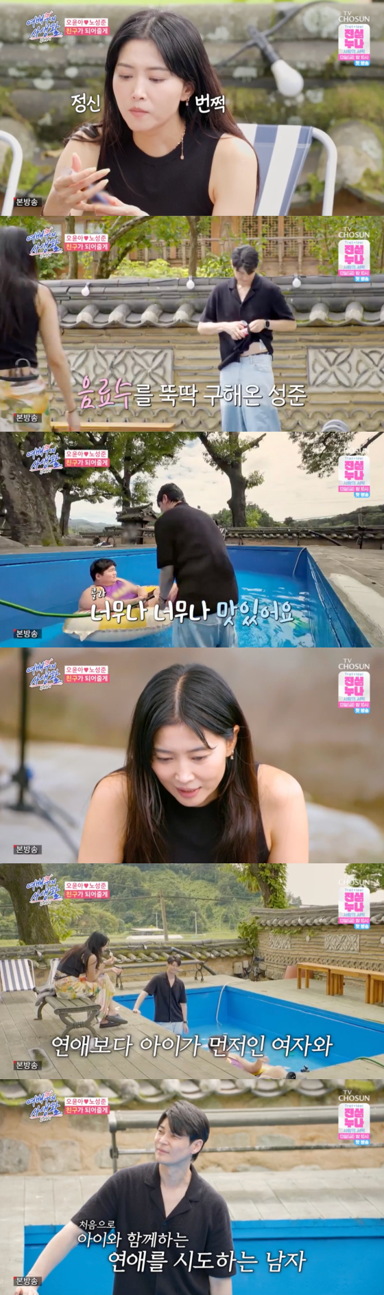10일 방송된 TV조선 예능 프로그램 '공개 연애 - 여배우의 사생활'에서는 오윤아 썸남 노성준이 오윤아의 어머니와 아들 송민을 만나 시간을 보내는 모습이 그려졌다.