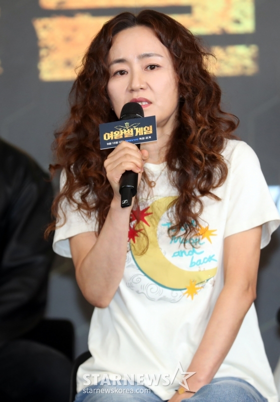 강숙경 작가가 11일 오전 서울 마포구 상암동 스탠포드호텔코리아에서 열린 웨이브 예능 ‘여왕벌 게임' 제작발표회에 참석해 인사말을 하고 있다. 2024.09.11 /사진=임성균