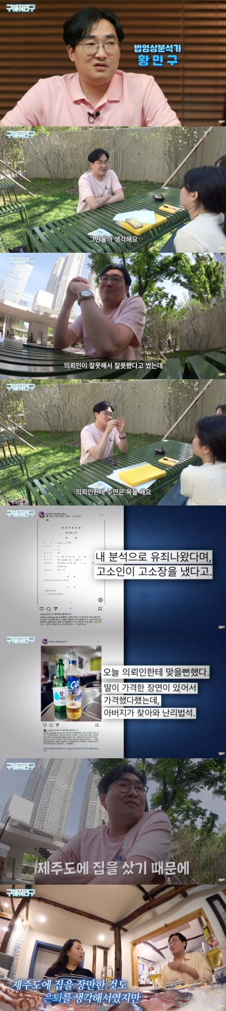 공개된 영상에서 황민구는 "매일같이 한 번씩 (법 영상 분석 일을) 그만둘까 생각한다"고 말문을 열었다.
