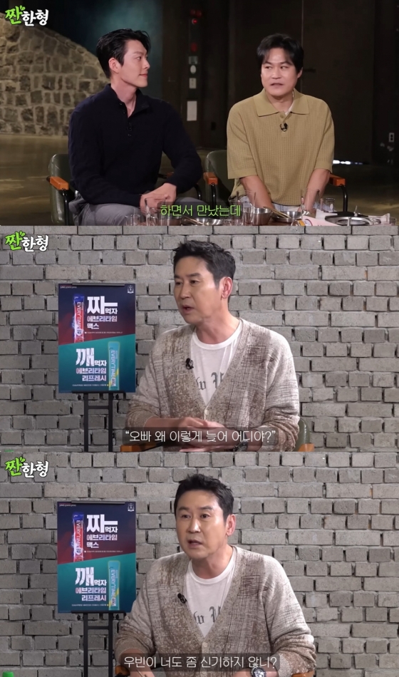 김우빈은 "어릴 때 형이 술을 많이 사주셨다. 시트콤 할 때 촬영 끝나면 '간단하게 한 잔?' 하더니 아침까지 마셨다"라고 말해 놀라움을 자아냈다. 그러자 신동엽은 "내가 매일 늦게 가니까 아내가 '오빠 어디야?'라고 하더라. 그래서 우빈이랑 마신다고 하니 '그래? 우리 집에서 마셔'라고 했다. 그래서 우리 집에 온 적이 있다"라고 전했다.