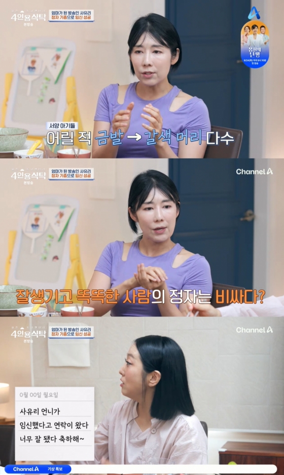 '4인용식탁' 방송인 사유리가 임신을 위해 시험관 시술한 이유를 전했다.
