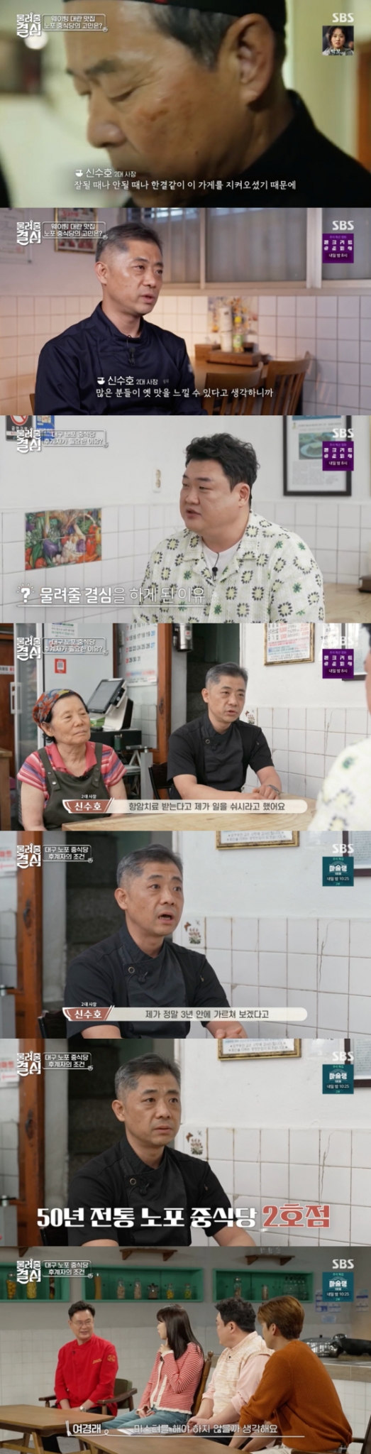 16일 방송된 SBS 예능 프로그램 '물려줄 결심'에서는 50년 노포 중식당 사장이 후계자를 찾으러 나선 모습이 그려졌다.