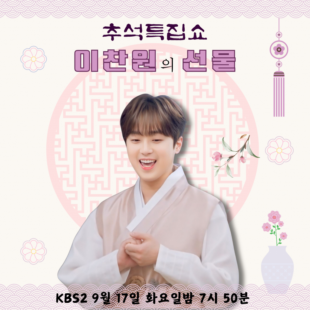 이찬원은 17일 오후 7시 50분부터 125분 동안 KBS 2TV 추석특집쇼 '이찬원의 선물'로 화려하고 풍성한 무대를 꾸민다.