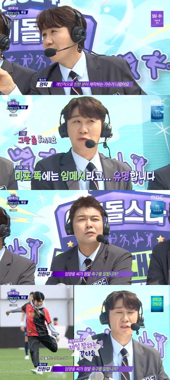가수 영탁이 임영웅의 축구 실력을 극찬했다.