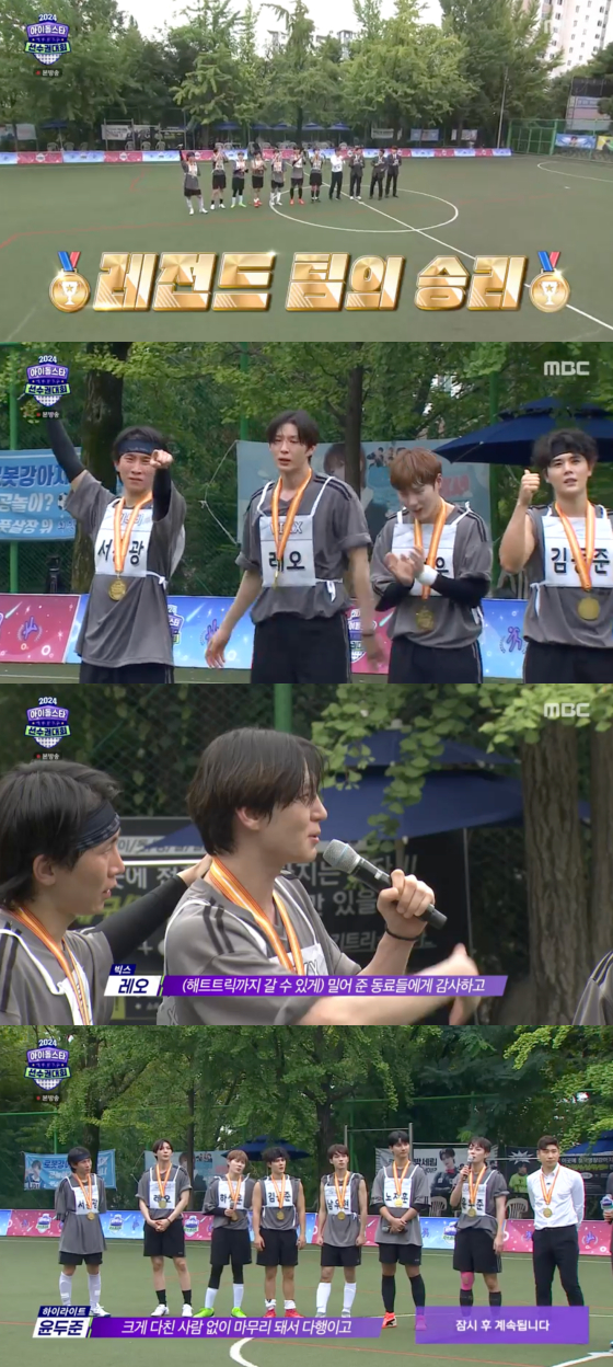 '아육대' 풋살 경기에서 레전드 팀이 승리의 기쁨을 누렸다. 브레이킹 경기에선 엠마가 속한 배드빌런이 금메달을 목에 걸었다.