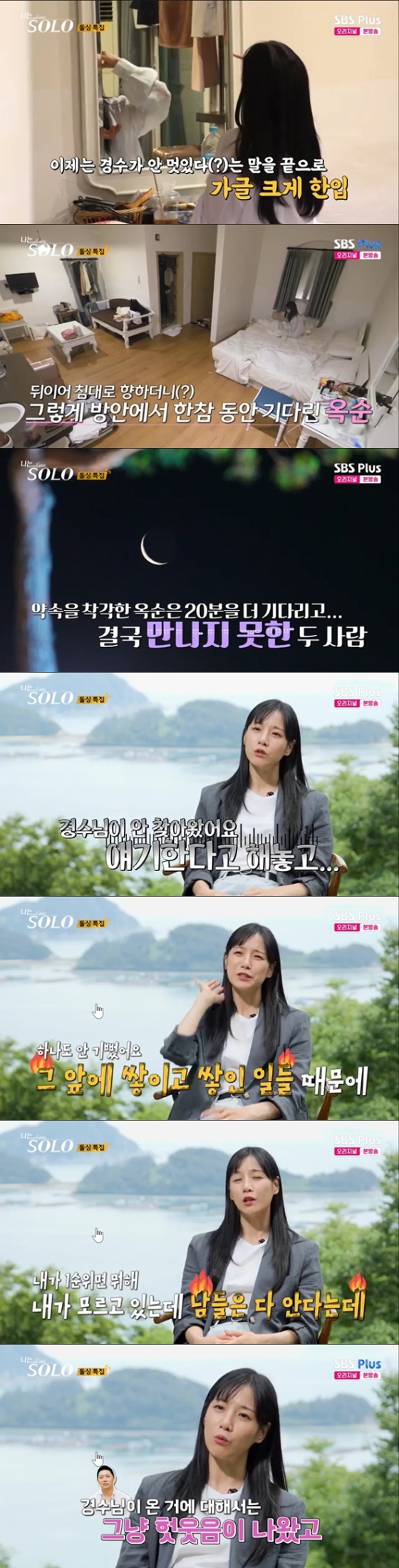 이날 방송에서 옥순과 경수는 자꾸만 엇갈리는 타이밍 때문에 서로에 대한 마음을 전하지 못해 안타까움을 자아냈다. 현숙과 데이트를 하고 돌아왔지만, 여전히 옥순에게 마음이 있었던 경수는 용기를 내 옥순에게 대화를 시도했다.