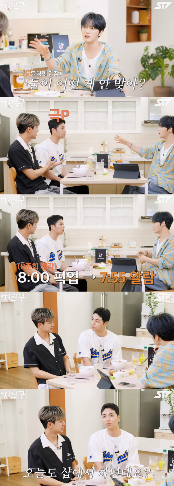 이날 공개된 영상에서 김재중은 게스트 송윤형, 구준회에게 "서로 잘 안 맞는다고 하는데 어떤 게 안 맞냐"고 물었다.