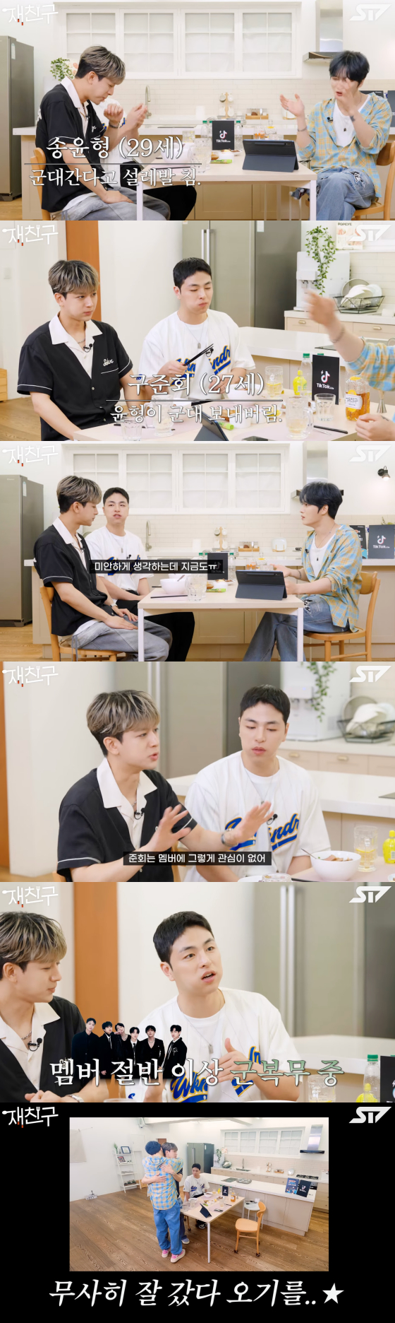 송윤형이 "준회는 멤버들에 관심이 없다"고 말하자 구준회는 "아니다. 멤버들이 하나둘씩 군대에 가니까 나도 모르게 착각을 한다"고 털어놨다.