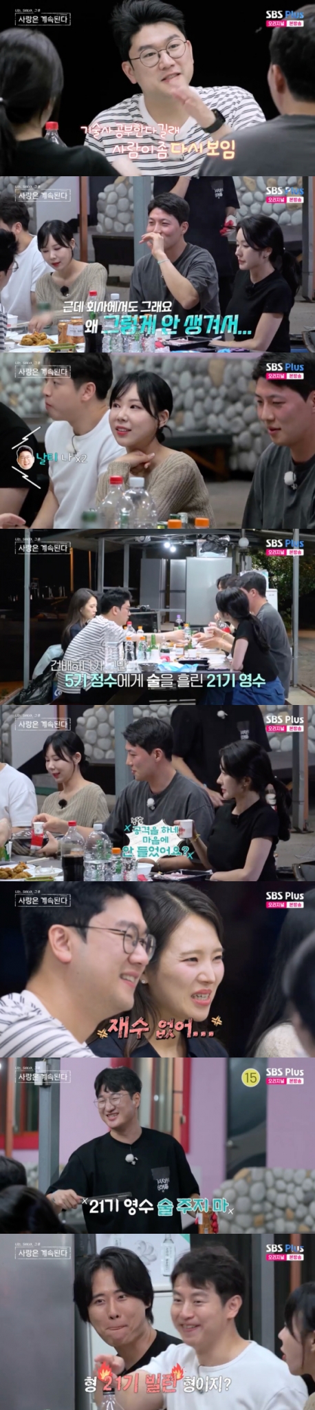 19일 방송된 ENA, SBS플러스 예능 프로그램 '나는 솔로 그 후, 사랑은 계속된다'에서는 21기 영수와 5기 정수가 저녁 식사 자리에서 신경전을 벌이는 모습이 그려졌다.