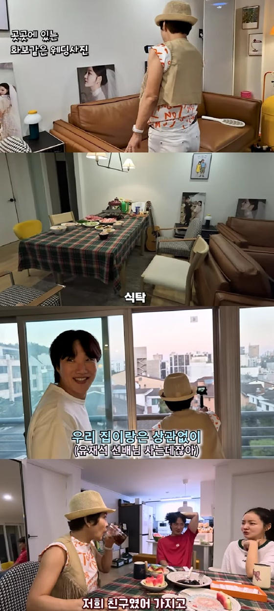 이어 캠핑용품 등으로 꾸며진 베란다를 구경하던 조혜련은 "여기가 논현동이냐. 여기 앞집은 어디냐. 좋은 데인가 보다"라고 했다. 이에 문지인은 "유재석 선배님이 저기 산다"고 말했다.