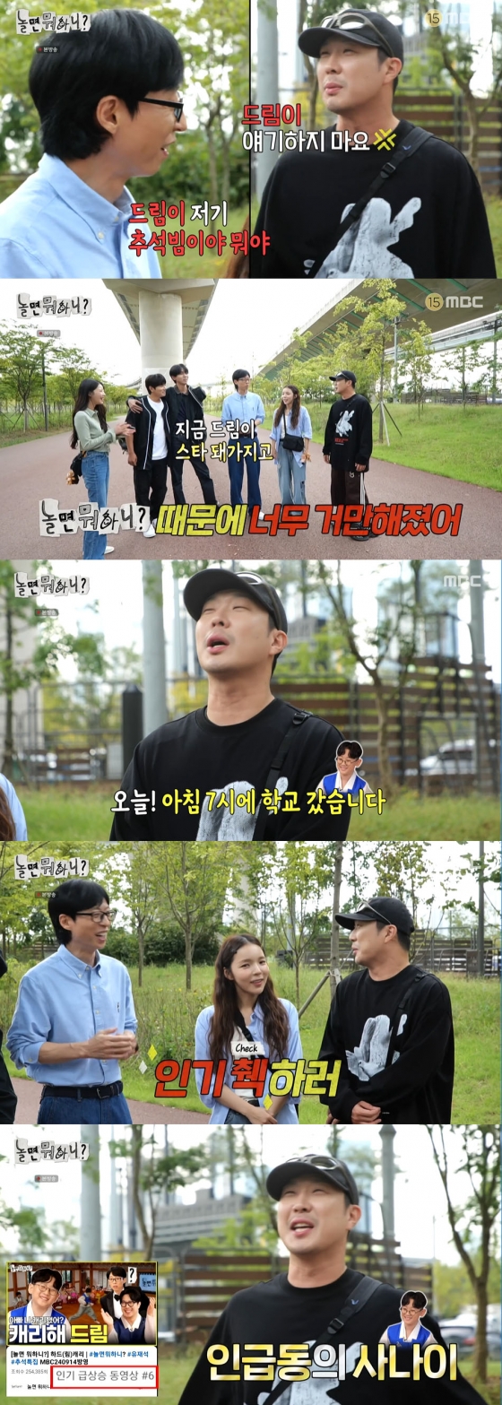 이어 하하는 "오늘 드림이 아침 7시에 학교 갔다. 인기 확인하러. 아침에 일어나서 '아빠, 나 인급동(인기 급상승 동영상)의 사나이야'(라고 하더라)"라고 밝혀 모두를 폭소케 했다.