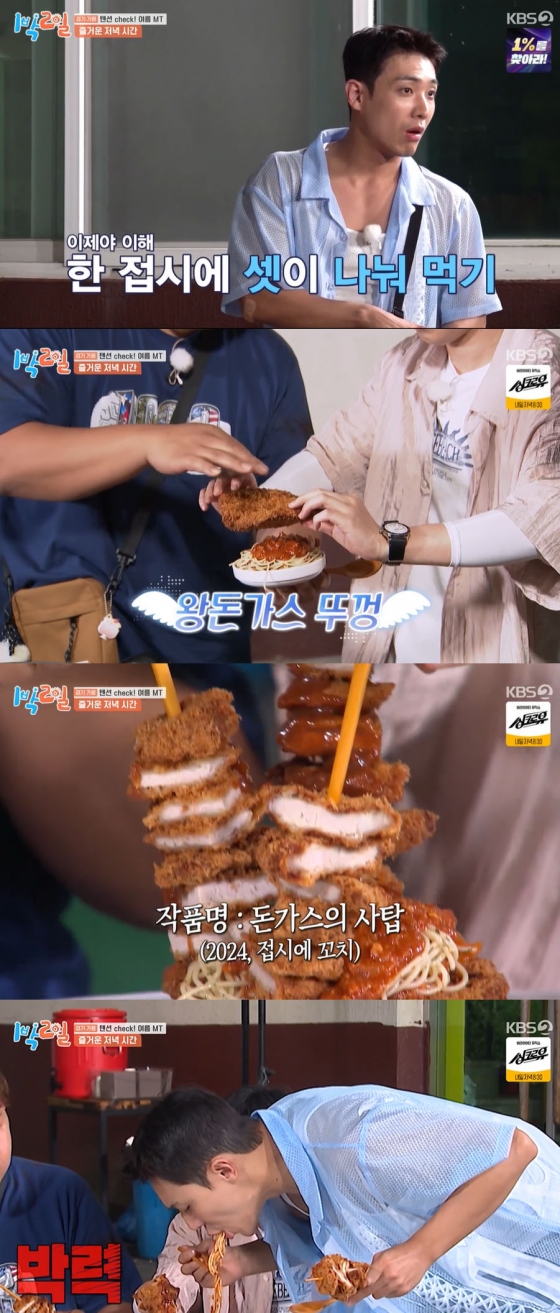 '1박 2일' 이준이 스파게티를 폭풍 흡입했다.