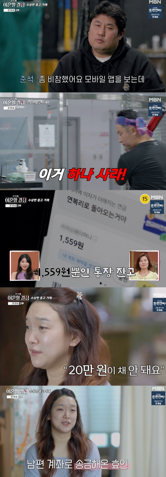 이어진 장면에서는 어효인이 제작진에게 "한 달에 얼마 씩 (최준석에게 용돈을) 주지는 않는다. 그때그때 필요할 때 계좌로 현금을 송금해주고 있다. 제가 보내주는 돈은 20만 원이 채 안되는 것 같다"라고 밝혔다.
