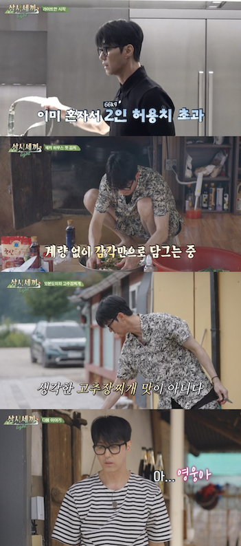 강원도 평창의 어느 시골집에 도착한 차승원은 능숙하게 식재료 정리를 마치고 곧바로 열무김치와 깍두기를 담그며 본격적인 촌캉스에 돌입했다. 한적한 농촌을 배경으로 특별한 설정을 더하지 않아도 한 끼 만들기에 집중하는 차승원의 모습은 '삼시세끼'를 기다려 온 시청자들이 기대한 '힐링' 그 자체였다.