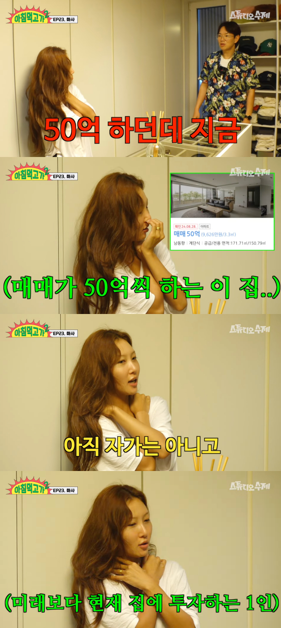 가수 화사가 매매가 50억 원에 달하는 전셋집을 공개했다.