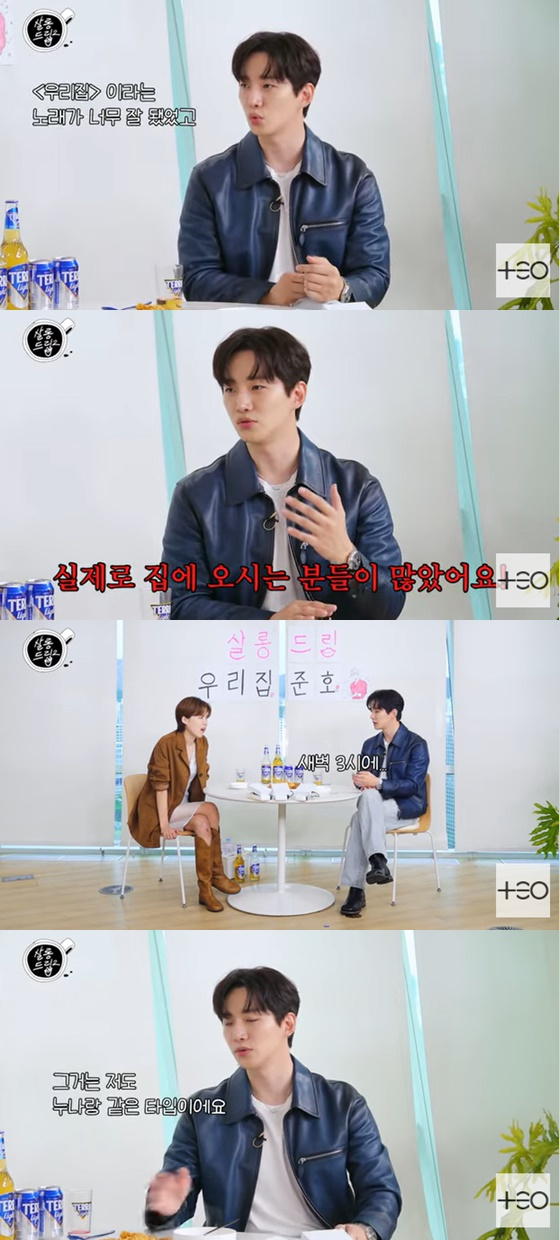 이에 장도연은 2PM의 히트곡인 '우리집'의 가사를 언급하며 "노래애서는 '우리 집에 가자고' 그렇게 손을 내밀었는데 모순이다"라고 말했다. 이준호는 "우리집에는 저만 간다"라고 답하며 웃었다.