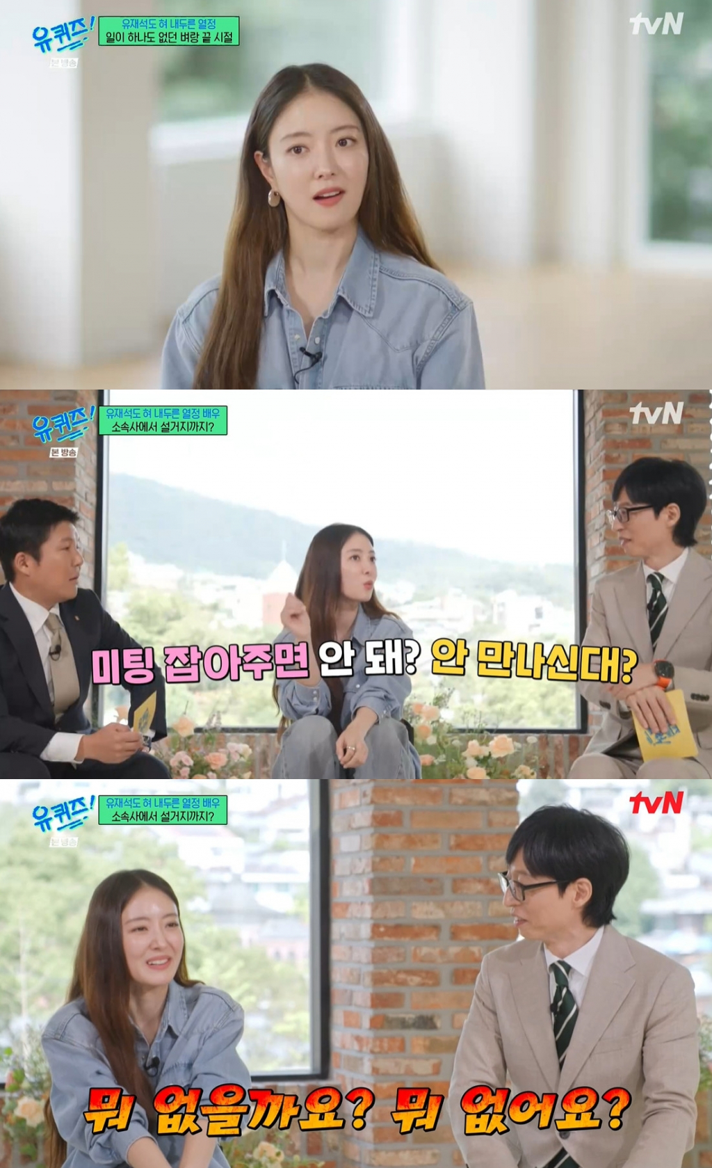 유재석은 "사무실에 세영 씨 책상이 있을 정도였다. 자주 소속사를 갔다는 거였는데 뭘 했나"라고 물었다. 이세영은 "내 존재감을 어필하는 거다. 배우가 스물 몇 명이 있지만 날 기억해달란 거였다. 사무실이랑 가까운 데로 이사했다. 그땐 너무 불안한데 그게 해결 방안이 되어 주는 건 아니지 않나. 뭔가를 해야 바뀐다. '내가 할 만한 건 없어?'라면서 밥 먹자고 했다. 안 들어온 대본도 봤다. 오디션이라도 보게 해달라고 했다"라고 답했다.