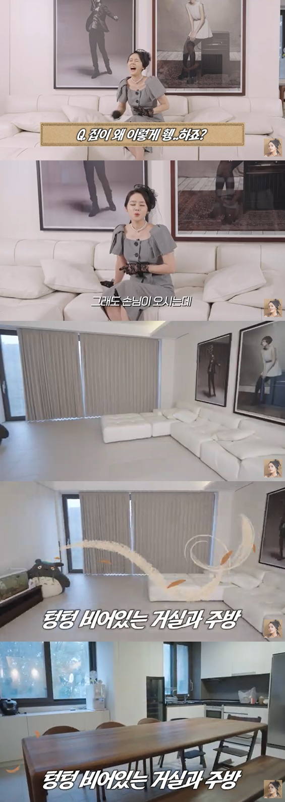 한가인은 유튜브 채널 개설 기념으로 옷을 차려입고 집 소개에 나섰다. 한가인은 집이 넓고 깨끗하다는 말에 "하울링이 있을 정도다"라며 "집을 이 상태로 만들기 위해 3~4주의 시간이 필요했다. 원래는 (소파 벽 뒷면) 이쪽만 공개하기로 했는데 그래도 손님이 오는데 발 디딜 틈은 있어야 하지 않겠나 했다. 원래 거실 끝에 정글짐이 있고 애들 장난감도 다 나와 있었는데 치웠다"라고 밝혔다.