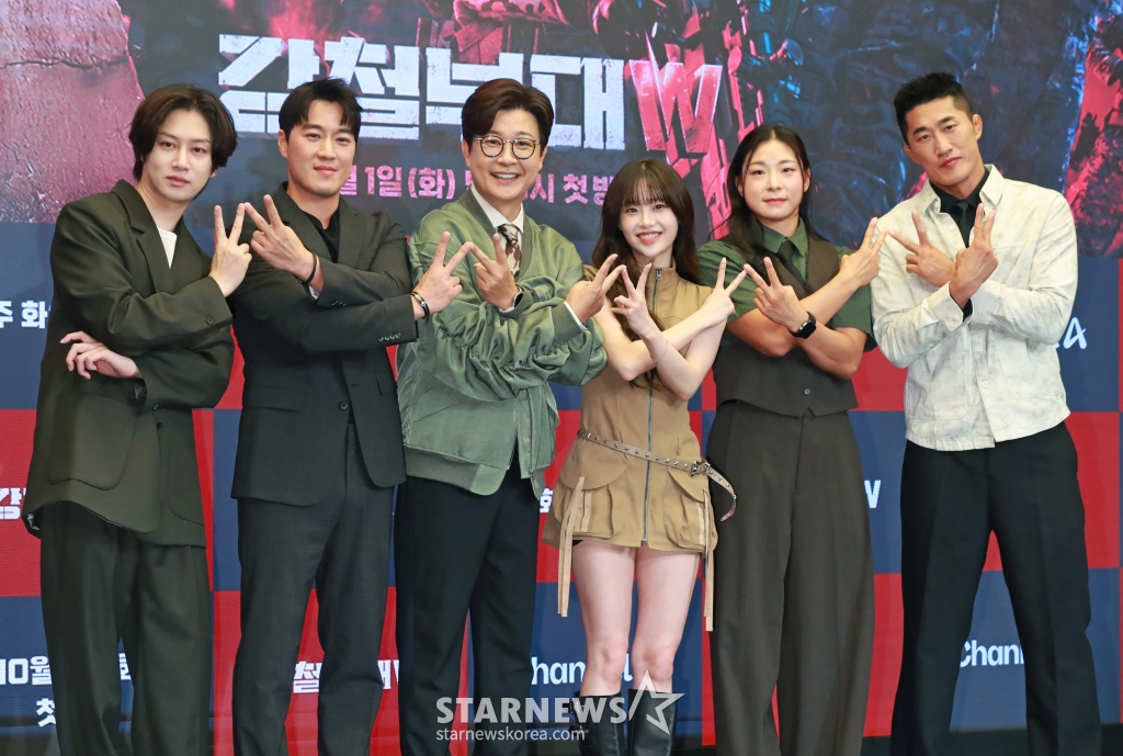 채널A 예능 프로그램 '강철부대W'는 27일 오전 서울 마포구 상암동 스탠포드호텔 서울에서 제작발표회를 진행했다. 이날 김성주 김희철 김동현 츄 장은실 최영재, 신재호 PD, 강숙경 작가가 참석했다.