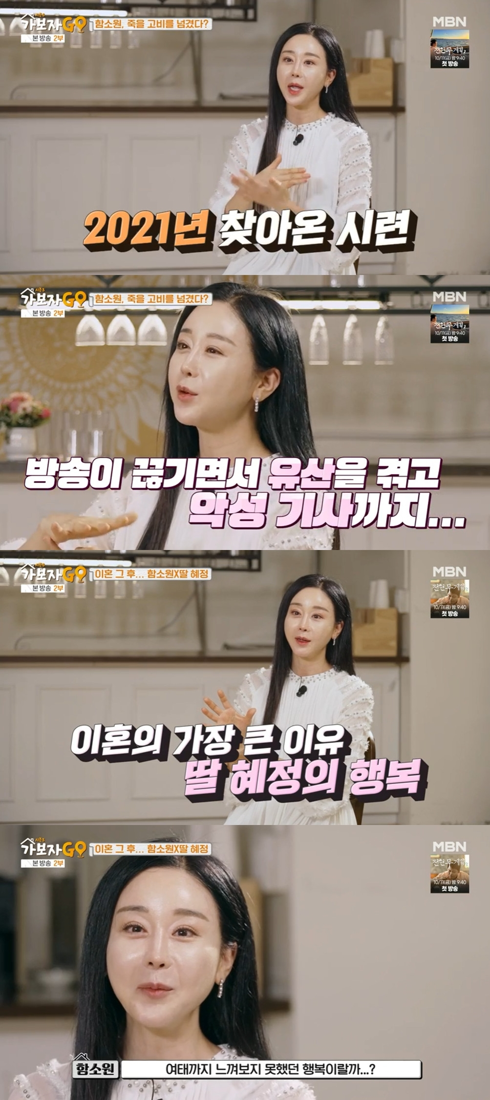 방송인 함소원이 진화와 이혼 후 일상을 공개하며 "딸의 행복 때문에 이혼했다"고 밝혔다.