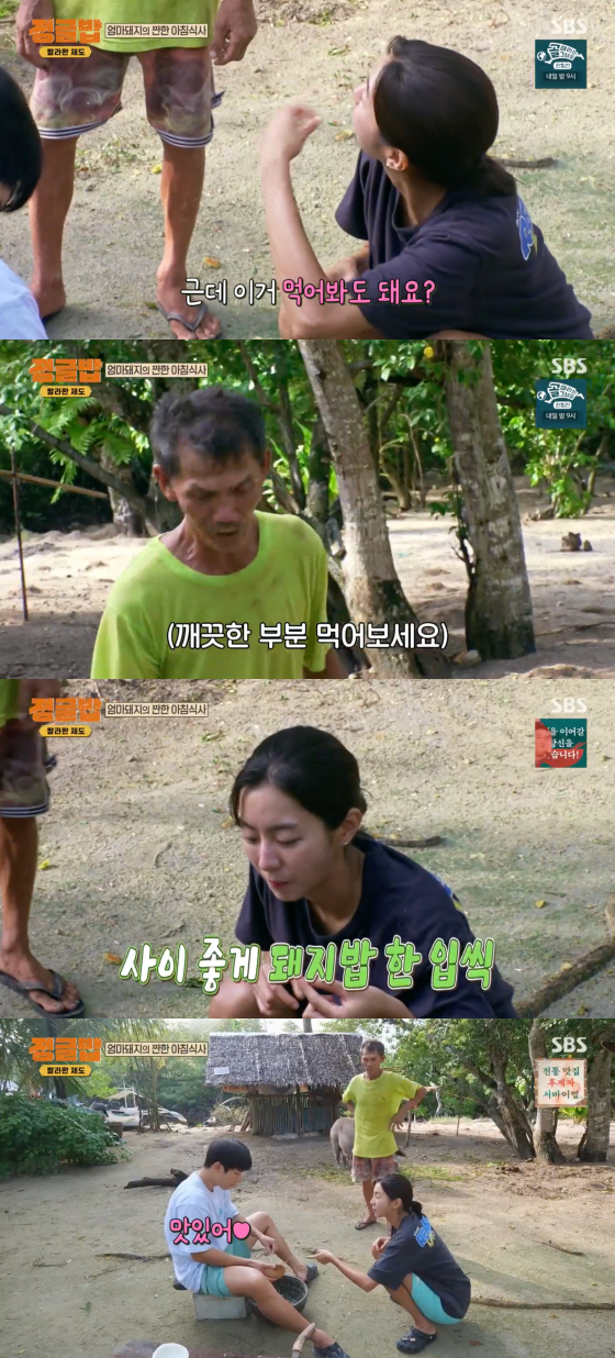 이내 돼지밥이 완성되자 유이는 현지인에게 "먹어봐도 되냐"고 물었고, 현지인은 흔쾌히 "깨끗한 부분을 먹어봐라"고 답했다.