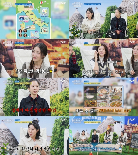 이번 시즌에는 매력적인 여행지로 급부상 중인 텐밖즈만의 특별한 이탈리아를 담아왔다는 점에서 기대를 안기는바. 4인방은 폴리냐노아마레, 마테라, 아말피, 카프리, 돌로미티까지 다녀온 장소를 중심으로 토크를 나누며 호기심을 더했다. 특히 이세영은 카약 체험이 인상 깊었던 폴리냐노아마레를 언급하며 "카약을 타고 동굴을 들어갔다가 나오는 길에 때마침 해가 지고 있었다. 언니들과 함께하는 그 순간이 너무 감사해서 눈물이 나왔다"라고 털어놓기도 했다.