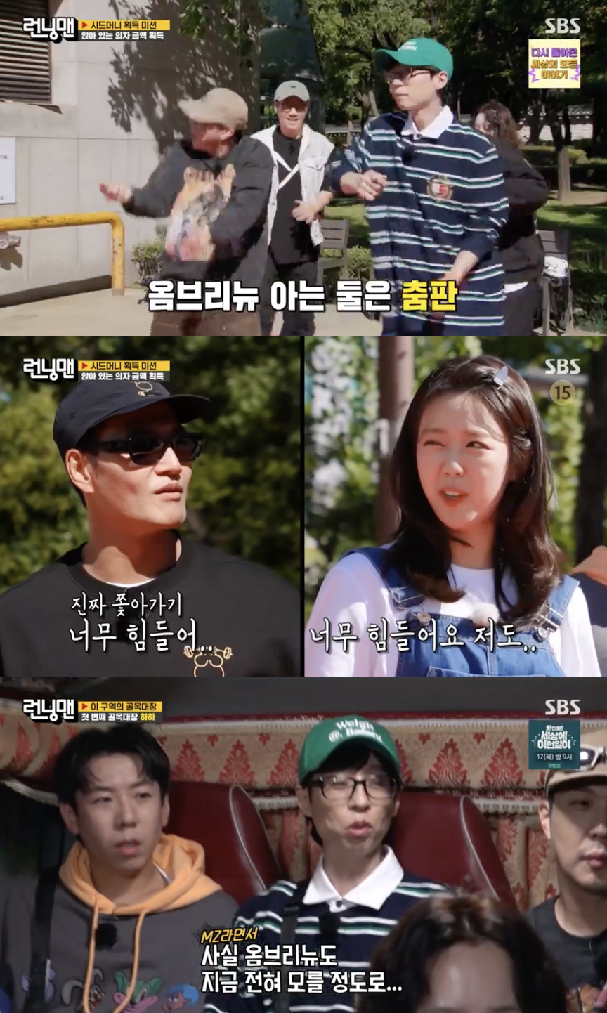 시작된 게임에서는 요즘 MZ세대에서 가장 유행인 '옴브리뉴 댄스' 노래가 흘러나왔다. 옴브리뉴를 아는 유재석과 하하는 스테이지 중앙에 나서 자신있게 춤판을 벌였다. 다른 멤버들이 해당 노래를 모르는 눈치를 보이자 유재석은 "이걸 모르네"라며 황당해 하는 모습을 보였다.