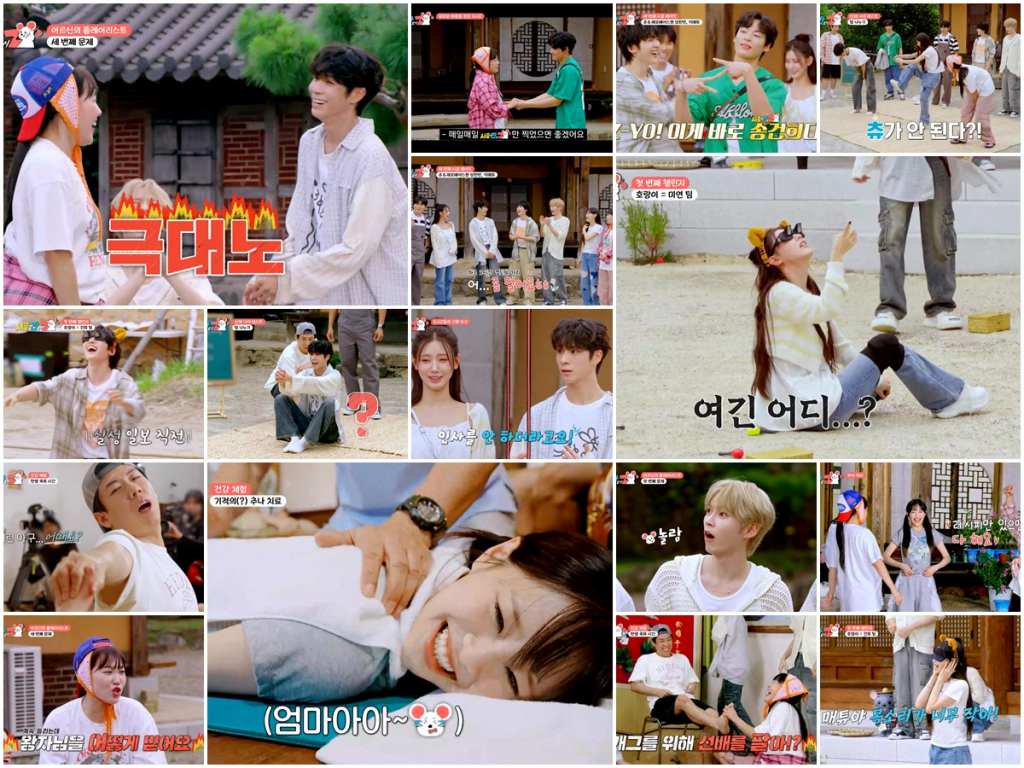 송건희와 미연이 양 팀을 대표하는 팀장이 된 가운데 두 사람은 팀원을 뽑기 위해 '신체 나이 테스트'를 가동했고, 츄는 담이 걸린 상태라며 "아니었으면 10대"라고 너스레를 떨었지만 50대 자세부터 실패하는 모습으로 폭소를 터지게 했다. 미연 역시 괴성을 지르며 가까스로 팔을 통과했고, 석매튜는 듣도 보도 못한 희한한 자세를 취하며 성공, 모두 20대 구간에 진입해 뿌듯한 미소를 지었다. 이어 양손을 모은 채 코어 근육만을 이용해 앉았다 일어나는 '코어 근력 테스트'가 이뤄졌고, 정동원은 이은지와 츄가 손쉽게 성공하는 것을 보더니 잔뜩 긴장하며 숨을 골랐다. 정동원은 양세찬에 이어 이은지와 이이경, 츄까지 셔츠 자락을 돌아가며 밟는 통에 일어나질 못했고, 결국 뒤를 돌아본 후 "이거를 언제부터 하고 있었냐"고 분노했다. 그러나 셔츠를 벗고 도전했음에도 불구, 일어서지 못해 "결국 그냥 못하는 것"이 밝혀져 폭소를 자아냈다.